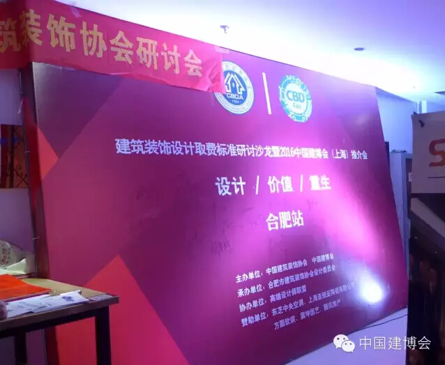 1月5日,由中國建筑裝飾協(xié)會(huì)、中國建博會(huì)主辦,合肥市建筑裝飾協(xié)會(huì)、設(shè)計(jì)委員會(huì)承辦,高端設(shè)計(jì)師聯(lián)盟協(xié)辦的"建筑裝飾設(shè)計(jì)取費(fèi)標(biāo)準(zhǔn)研討會(huì)暨2016中國建博會(huì)(上海)推介會(huì)"在合肥市港匯廣場(chǎng)A座成功舉行?;顒?dòng)以"設(shè)計(jì)|價(jià)值|重生"為主題,現(xiàn)場(chǎng)集眾多設(shè)計(jì)精英、家居企業(yè)高層、協(xié)會(huì)領(lǐng)導(dǎo)于一堂,共同探討安徽建筑裝飾行業(yè)的未來發(fā)展,推動(dòng)建筑裝飾設(shè)計(jì)取費(fèi)標(biāo)準(zhǔn)進(jìn)程。