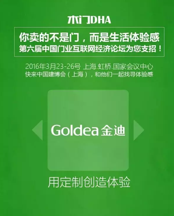 互聯網時代,各行各業(yè)都在探索著屬于自己的新出路,木門行業(yè)同樣也不例外。作為傳統(tǒng)制造行業(yè),木門在互聯網時代的發(fā)展之路可謂一波三折。在經濟環(huán)境不容樂觀的今天,如何做好木門電商,如何進行渠道建設與維護,如何做好品牌定位等問題成為制約木門企業(yè)發(fā)展的難點和痛點。面對這樣的大背景,中國門業(yè)第一網絡媒體搜門網責無旁貸,聯合實力品牌金迪木門,邀您共聚中國建博會(上海),共同探討新環(huán)境下木門企業(yè)的發(fā)展出路。