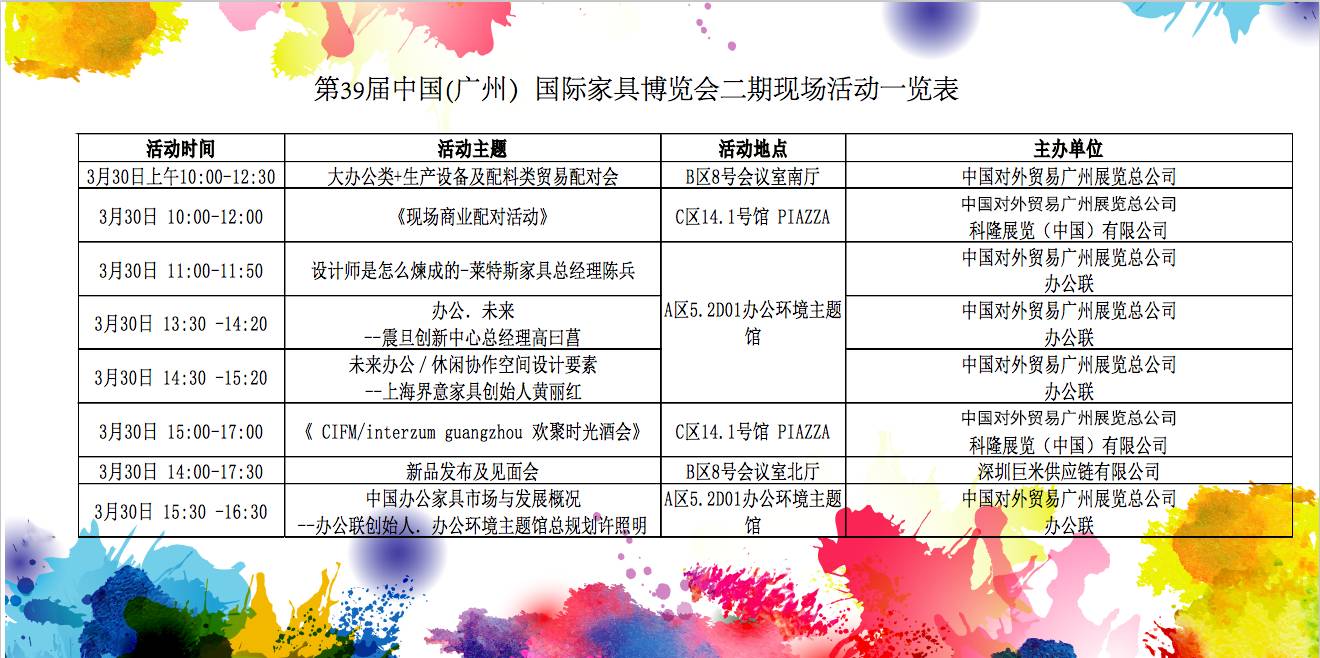 除了精品優(yōu)品的展示,二期展會還將為您奉上29場精彩紛呈的現(xiàn)場活動,是不是有點選擇恐懼癥呢?別著急,看看下表,提早添加進您的日程表吧!