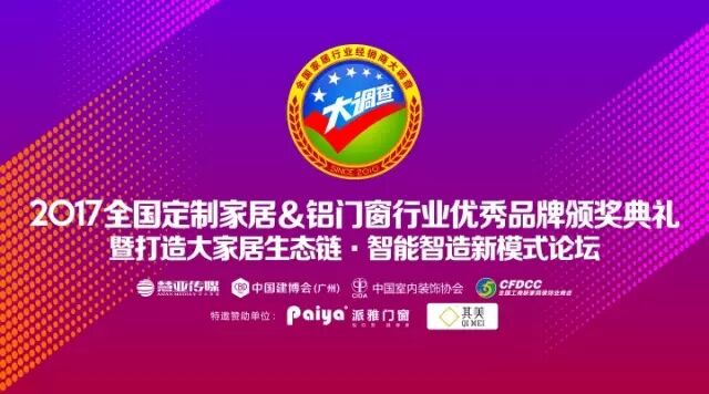 2017中國建博會(廣州)在7月11日落下帷幕。展會期間,2017全國家居行業(yè)經(jīng)銷商大調(diào)查暨定制家居&鋁門窗行業(yè)優(yōu)秀品牌頒獎典禮于廣交會展館B區(qū)8號會議室圓滿落幕,此次活動由中國建博會和慧亞傳媒主辦,并得到了中國室內(nèi)裝飾協(xié)會、全國工商聯(lián)家具裝飾業(yè)商會、廣東省定制家居協(xié)會、廣東省衣柜行業(yè)協(xié)會、廣東省門業(yè)協(xié)會、中國智慧人居產(chǎn)業(yè)促進(jìn)會、四川省定制家居協(xié)會等單位的大力支持;同時獲得佛山市南海派雅門窗制品有限公司、佛山其美裝飾材料有限公司/河南其美裝飾材料有限公司的鼎力支持;更有飛宇門窗、帝奧斯門窗、云米科技、歐派克、帕萊德等為盛典提供支持。本次活動同期舉辦打造大家居生態(tài)鏈OR智能智造新模式定制行業(yè)發(fā)展論壇,現(xiàn)場行業(yè)大咖匯聚一堂,共同探討家居行業(yè)發(fā)展新方向,現(xiàn)場更正式揭幕定制家居&鋁門窗行業(yè)優(yōu)秀品牌七大獎項!